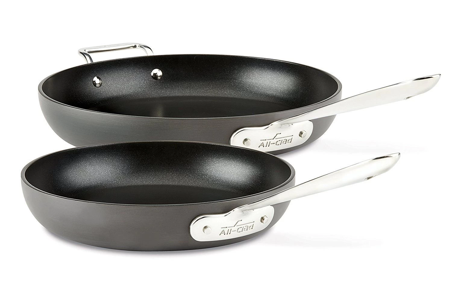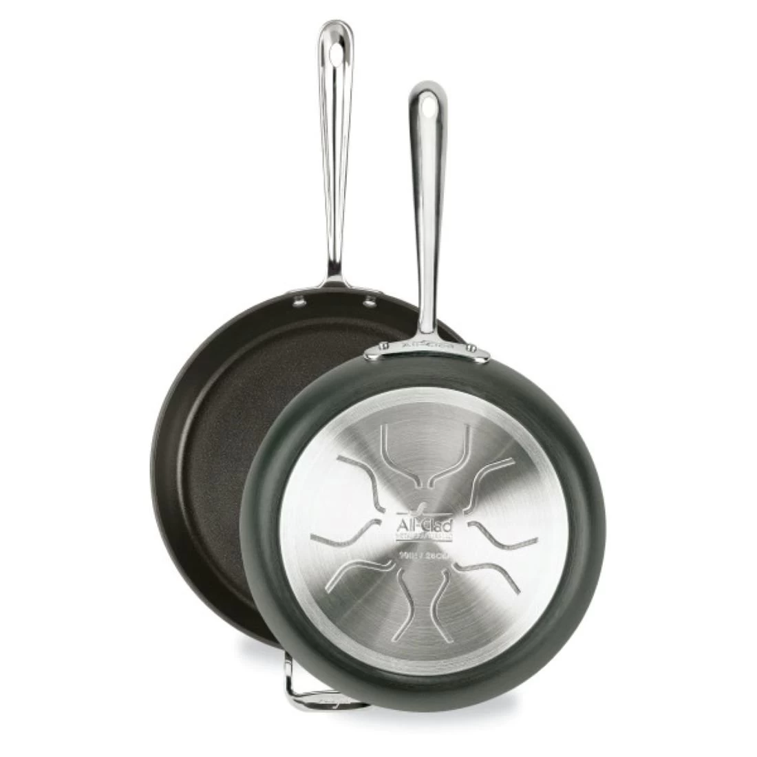 Toss in some eggs, maybe a little bacon! Sear, brown, and fry up some delicious meals in the Non-Stick HA1 Fry Pan Cookware Set – 2-Pack by All-Clad, with or without the oil. Not one part unchecked – cook foods nice and evenly, all around, which is so much easier with the hard-anodized aluminum construction in the fry pans, drawing out the rich and flavorful taste and texture you desire at every home-cooked meal. From stove to sink or sink to stove, moving the pans back and forth aren’t much of a hassle with its durable stainless steel handles that make for a secure grip, even a comfortable one. Any stovetop is good really; however, with the fry pan’s particular design, induction tops are quite an effective option. Forget the lids, each frying pan is totally okay in the oven up to 500°F. Toss and turn foods so much easier with the low-profile characteristics of the pan: a flat bottom with flared sides. Being dishwasher safe, you can keep the sink from filling to the brim with big and small dishes, like with this type of fry pan, but handwashing is so much gentler on the non-stick coating to maintain its long-lasting cooking quality. Dependable, high-quality cookware is how to turn out good eats for the whole family, and with the All-Clad HA1 Non-Stick Fry Pan Cookware Set, meal time is just getting started.