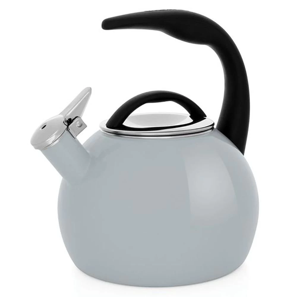 With a durable high-fired enamel finish that is guaranteed not to fade, Chantal’s 2 Qt. Enamel-On-Steel Anniversary Teakettle in Fog Grey provides a subtle pop of color on groggy mornings or overcast afternoons while you await the whistle announcing your favorite hot beverage is just around the corner.