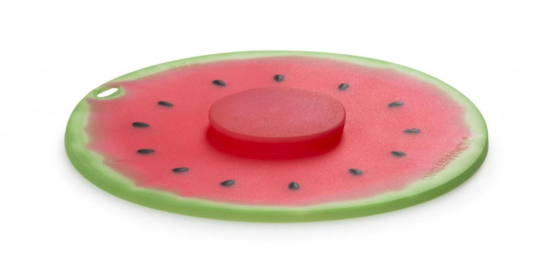 No matching lid for your pan? No problem! Use this 9” Watermelon lid by Charles Viancin instead. This food-grade silicone lid suctions to any smooth rim to create both an airtight and watertight seal on any bowl or pot. It can be used as a splatter guard, as a cover for baking dishes, a lid for steaming, to store leftovers in the fridge, and more! It’s safe at high temperatures, up to 428°F and it’s freezer safe to -40°F.