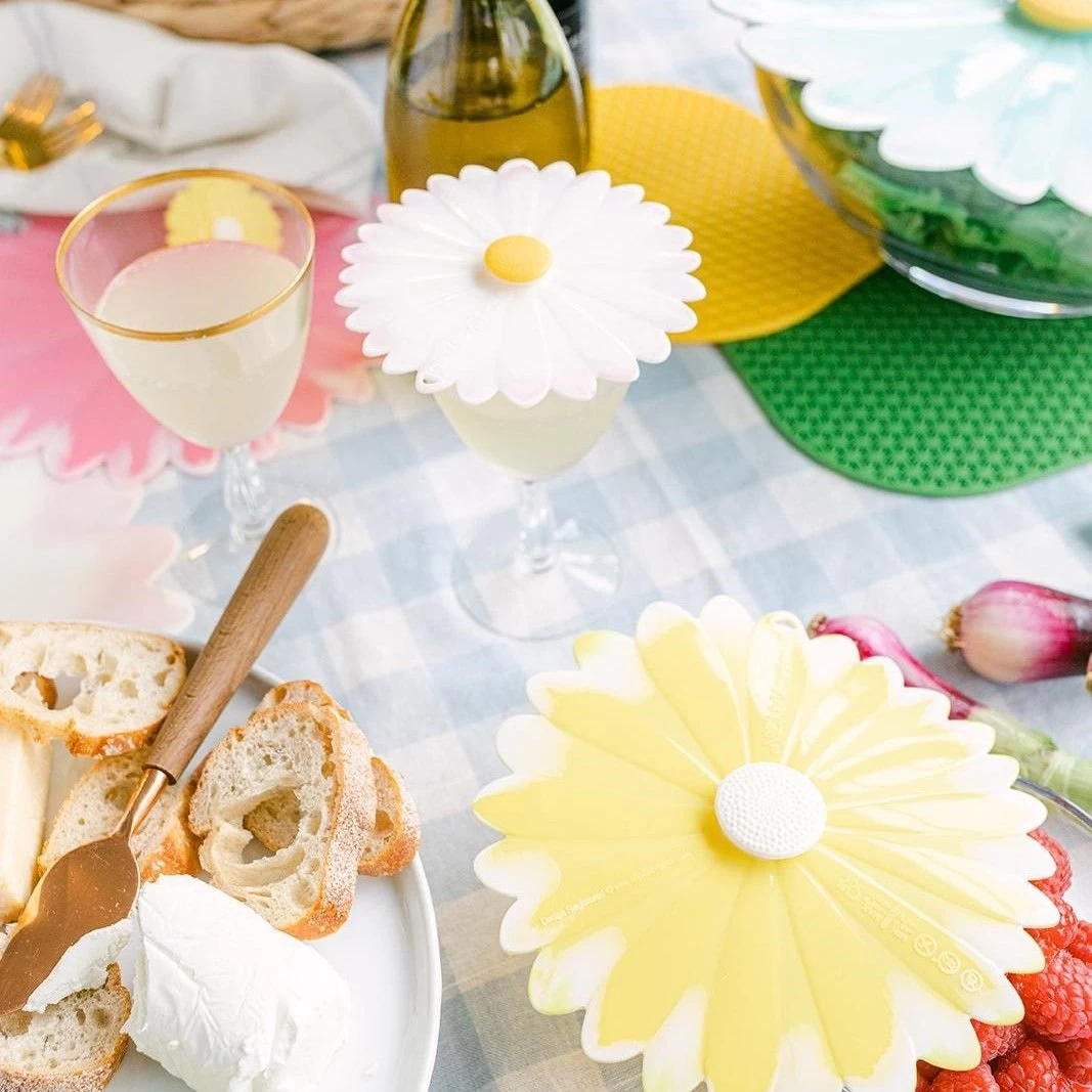 The Charles Viancin Yellow with White Daisy 6” Silicone Lid is the perfect multi-use lid for storing food and containing splatter while cooking! This BPA-free universal food cover creates an airtight suction seal and is microwave, freezer, dishwasher, and oven-safe up to 428°F. When used while cooking or reheating food, this heat-resistant lid locks in moisture and prevents splatter, making it great for frying, simmering soups, steaming vegetables, and more! When used to store fresh fruits, vegetables, and other food in the fridge or freezer, it keeps air out and prevents freezer burn to keep your food fresh and ready to enjoy. Perfect for use with any round-rimmed baking dish, saucepan, fry pan, bowl, or container, the Charles Viancin reusable Daisy Lids will help you save money on single-use plastic wrap or aluminum foil and will quickly become one of your favorite kitchen tools!