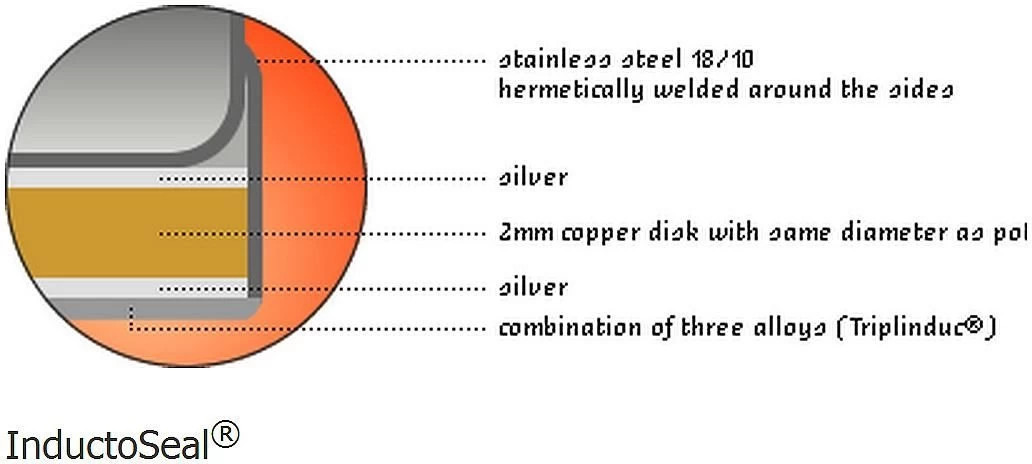 InductoSeal is the heart of the Demeyere Cookware Atlantis Induction Saucepan bottom that is a hermetically encapsulated copper disk sealed into the 7-PlyMaterial, which increases the heat-conducting cooking surfaces to 33% larger than traditional saucepans. No fats, dirt, or water can permeate the strong welds of 18/10 stainless steel that hold the base in place.