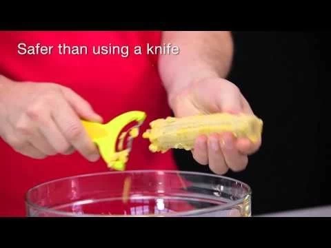 Quickly and easily remove corn kernels from the cob with the Corn Zipper from Kuhn Rikon! The Corn Zipper’s teeth are designed to cut directly at the base of the kernel and not cut into the cob so cut kernels drop directly into your bowl without as much waste as using a knife. The ergonomic handle can be used either right-handed or left-handed and the textured silicone insert helps you keep a good grip.
