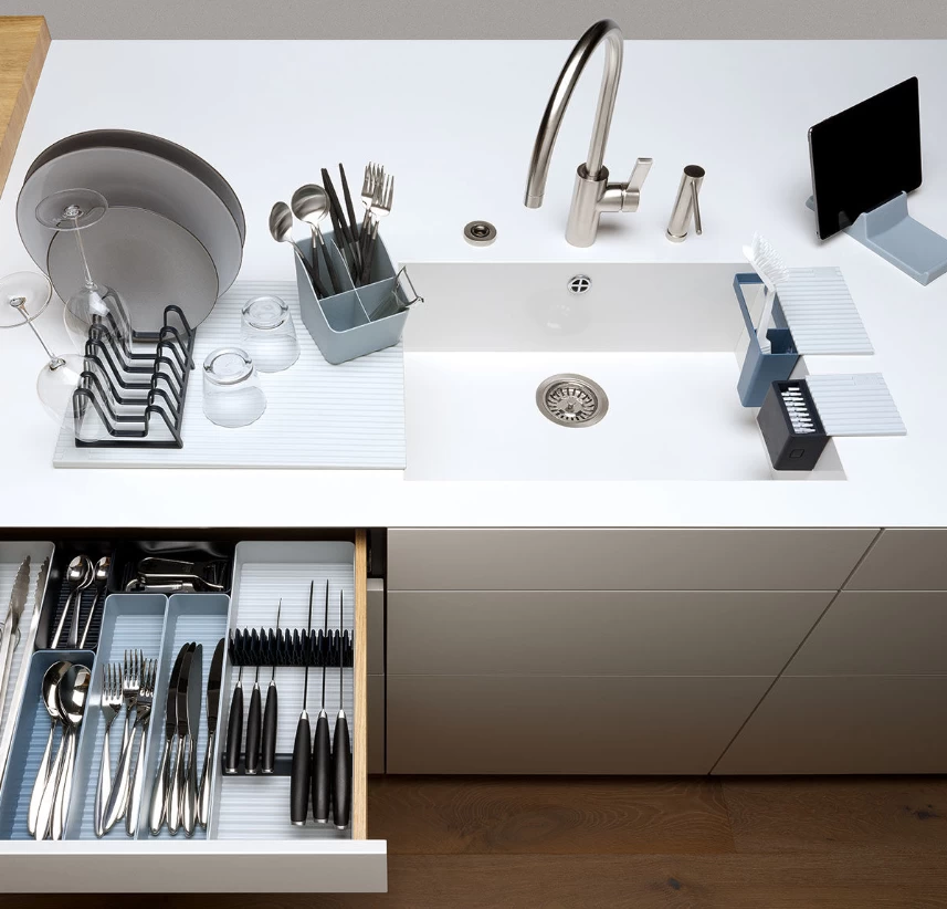 Inspired by the movement and hue of water, the Wave Collection by Kuhn Rikon features a unique wave pattern designed seamlessly within each item for advanced functionality and a modern, organic look. Let the calming presence of the ocean make organizing and cleaning a breeze with kitchen cleaning and storage solutions from the Wave Collection by Kuhn Rikon!