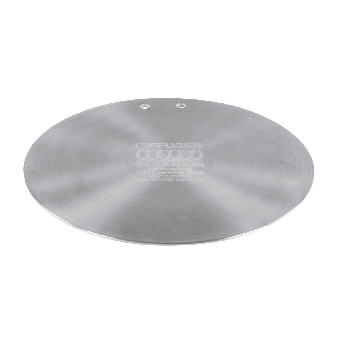 This disc turns everything resting on its surface induction ready. Both stainless steel sides, highly induction compatible, sandwich a thick aluminum insert speeding up heat transmission. From copper to aluminum to ceramic, this adapter makes them all compatible with induction. It comes with a removable stainless steel handle.