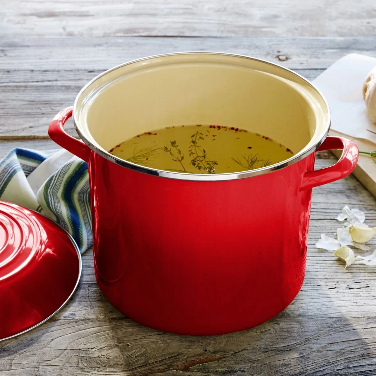 - Le Creuset Stock Pot – 10 Quart Capacity – Cherry Red