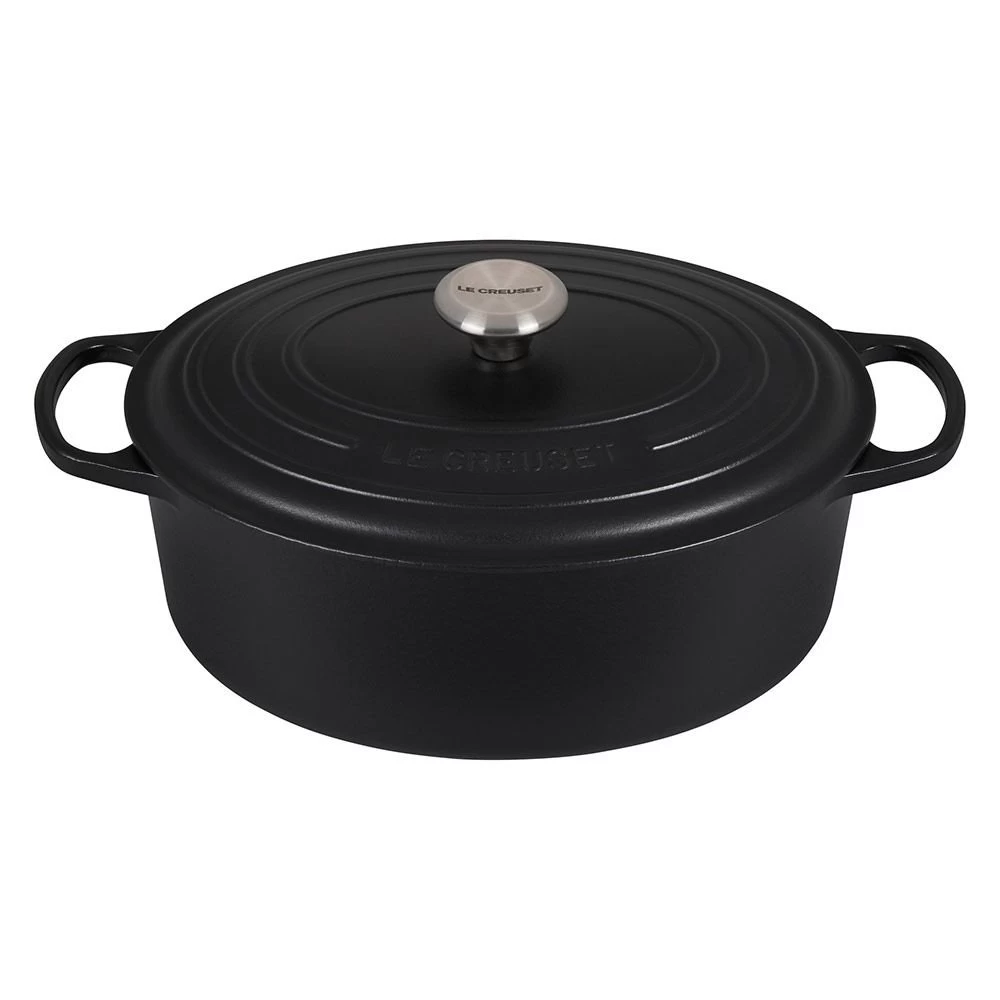 Le Creuset 6.75 Qt. Oval Signature Dutch Oven with Stainless Steel Knob (Licorice) Features: