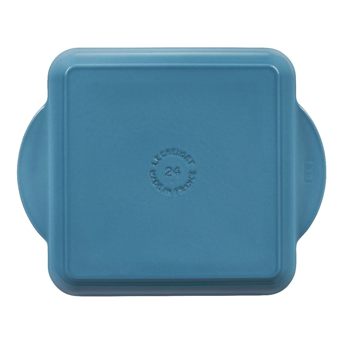 Le Creuset 9.5″ Square Signature Enameled Cast Iron Griddle Pan (Caribbean Blue) Features: