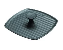 Turn any grill pan or skillet into a panini press with the Le Creuset 9-Inch Satin Black Panini Press L2053B-2600. This Le Creuset panini press heats your grilled sandwich from the top at the same time it’s being heated from the bottom – and the heavy ribbed press even makes grill marks. Made of durable cast iron with Le Creuset’s Satin Black enamel finish, the press doesn’t need to be “seasoned” before use, boasts exceptional heat retention and distribution, and is dishwasher safe. When your sandwich is grilled to perfection, you can lift the panini press by its heat-resistant phenolic knob handle without worry of burning your hand. Cleaning your Le Creuset panini press is as easy as putting it in the dishwasher. Why settle for a boring cold sandwich when in no time you can make a hot, grilled panini with the Le Creuset Panini Press?