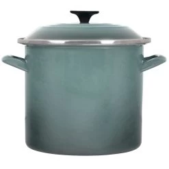 - Le Creuset 8 Qt. Stock Pot | Marseille Blue – Make complex stocks, hearty soups & stews, or a spicy Cajun crawfish boil to bring friends & family together in the Le Creuset enameled 8 Quart Stock Pot. The design of this Le Creuset stockpot limits evaporation causing liquids to mix and bubble together giving your entire dish rich flavor. Safe to use on any heat source from electric to halogen. The stainless steel rim helps to prevent cracking or chipping of the sleek porcelain enamel. Follow simple care instructions to ensure the enjoyment of your Le Creuset 8 qt stockpot for years to come.