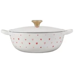 - Interior enamel has a smooth finish that promotes caramelization, prevents sticking and resists stains