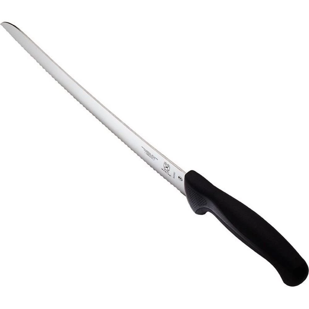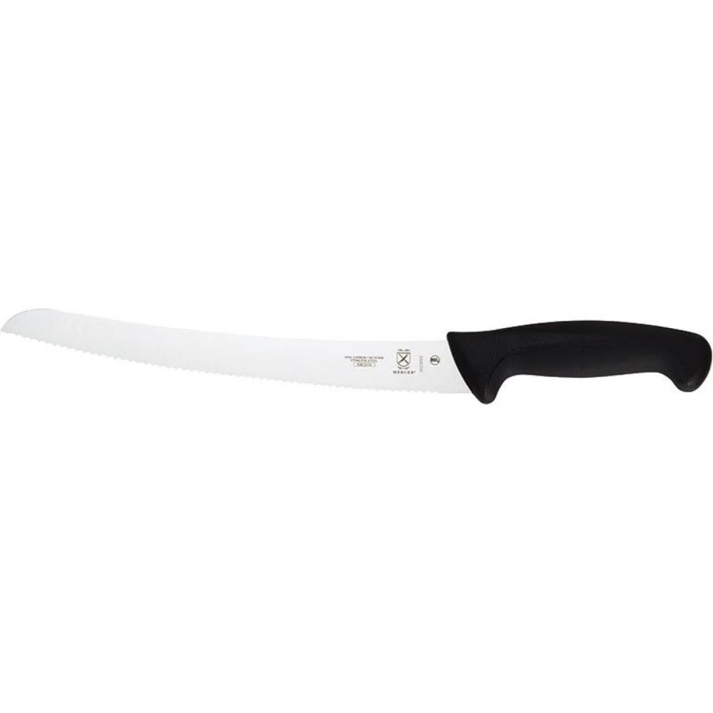 Upgrade your cutlery collection with the Mercer Millennia 10″ Curved Bread Knife. This serrated knife is designed for cutting through soft bread, cake, and other baked goods without crushing them. This allows you to get beautiful slices of bread and perfect cake pieces every time without any extra effort. As part of the Mercer Millennia collection, this 10″ curved bread knife is made from a single piece of high-carbon steel and features a non-slip hilt for easy handling. Don’t settle for uneven bread and mangled cake pieces, get the 10″ Curved Bread Knife from the Mercer Millennia collection today!