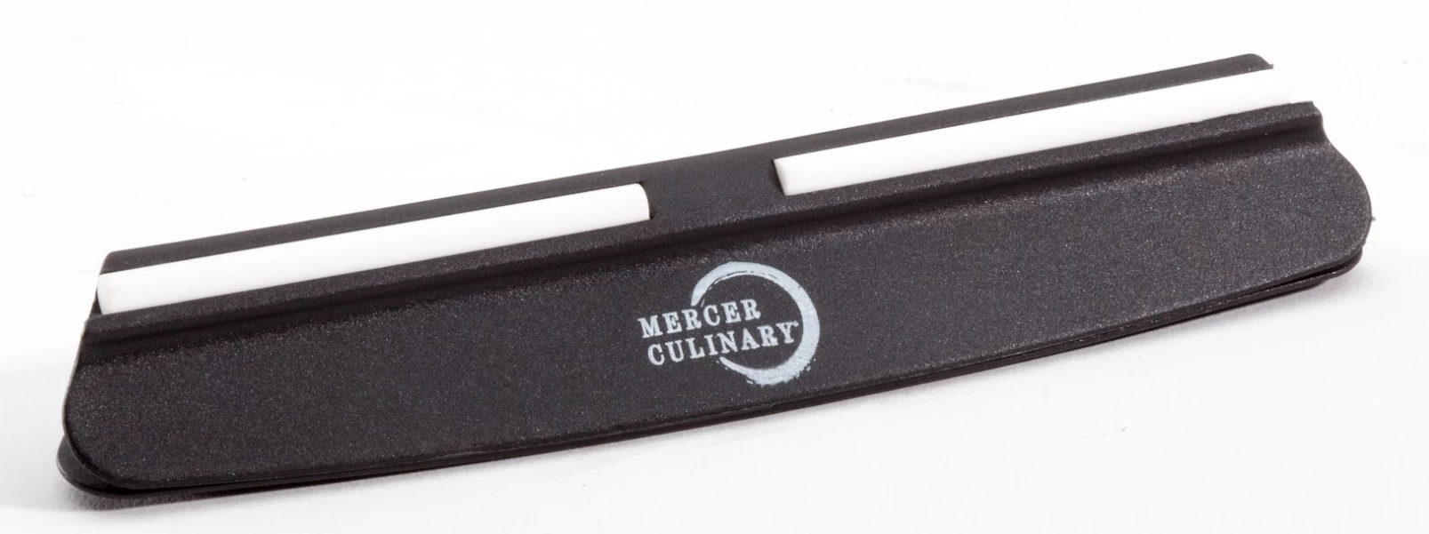 Keep your chef’s knives in peak condition with this knife sharpening guide from Mercer Cutlery. The Mercer Guide is a 4″ knife sharpening stone guide with ceramic inserts that teaches you, and all who touch your prized cutlery, the proper angle for sharpening with a stone. The generous 4″ width is designed to hold your knife at a 20 degree angle and ideal for chef knife blades 6″ and longer. Enhance your push cuts, slicing, dicing, and chopping with the easy-to-use Mercer Guide knife sharpening stone guide from Mercer Cutlery.