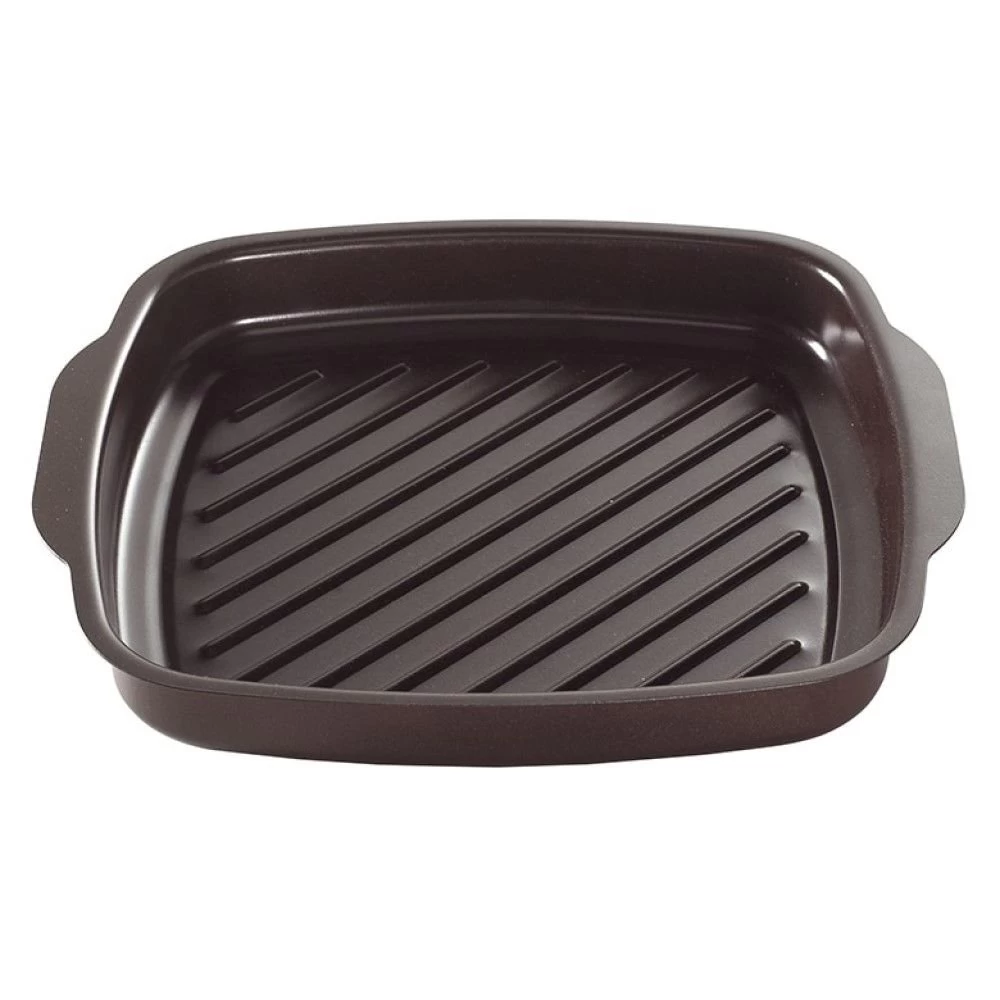 - Helper handles and ribbed bottom are perfect for searing