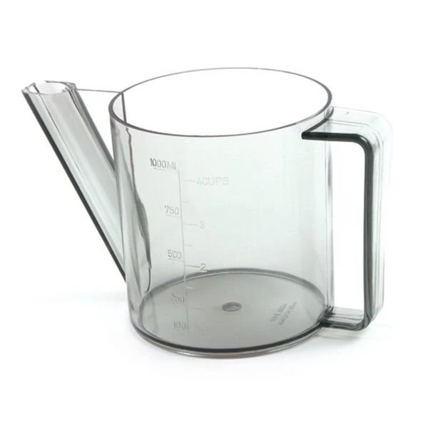 This 4 cup separator is a strainer and can do gravies, stock, and sauces. The best thing about these separators are their ability to separate fat from food. The fatty liquids will rise to the top in a light colored layer and you can pour from the bottom, where the actual ingredients are located. The Strainer has a dripless spout and has standard and metric markings.