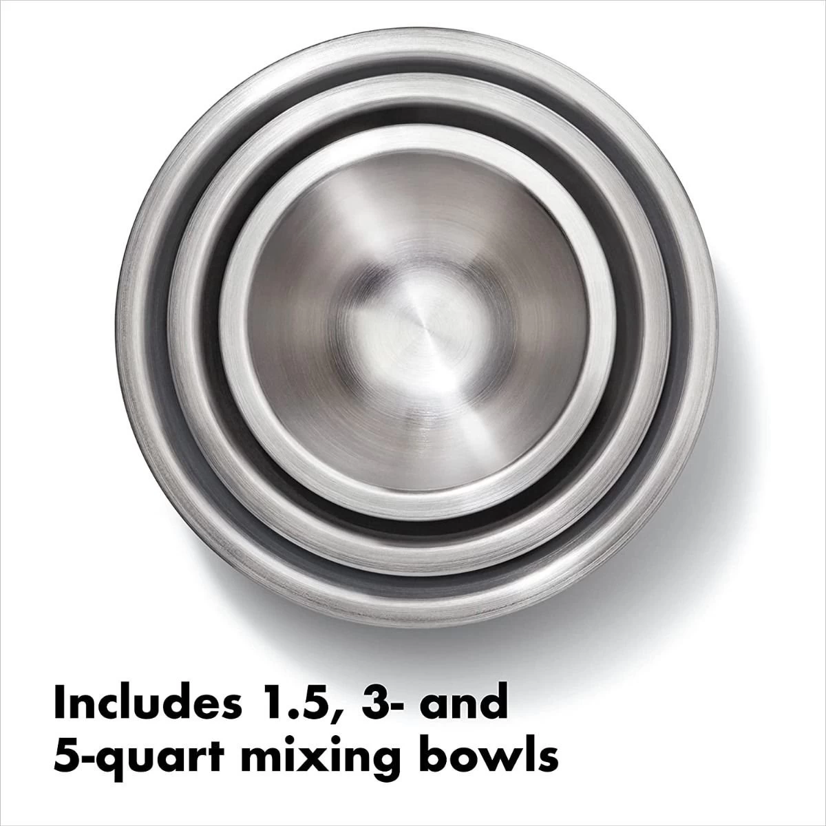 OXO Good Grips 3-Piece Stainless Steel Mixing Bowl Set (White) Features: