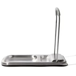 This nifty little product does exactly what it’s advertised for: it acts as both a wide, multi-utensil spoon rest as well as a lid holder. The curved edges of this rest allow sauces, water, and other foods and liquids to drip downward and pool into the rest rather than on a stainable countertop! But it stands out from other spoon rests because of both its size, which allows for more than just one spoon to be rested there, and also because of the built-in lid holder! When removing a lid from a cook pot, it can be easy to not know where to put it down. But with this product, you have the perfect spot! And keeping water off of wooden counter tops is always a good idea. And as far as keeping this solid stainless steel rest clean, it’s completely dishwasher safe!