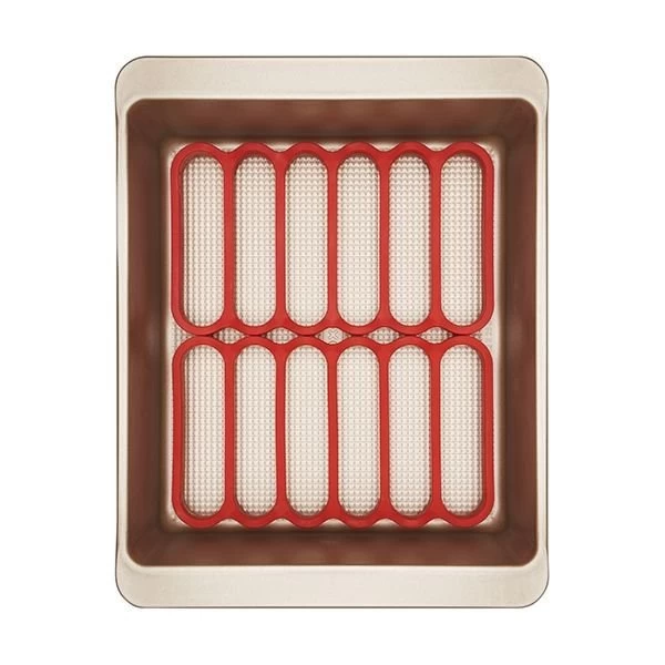 - Keeps food out of fat for healthier cooking