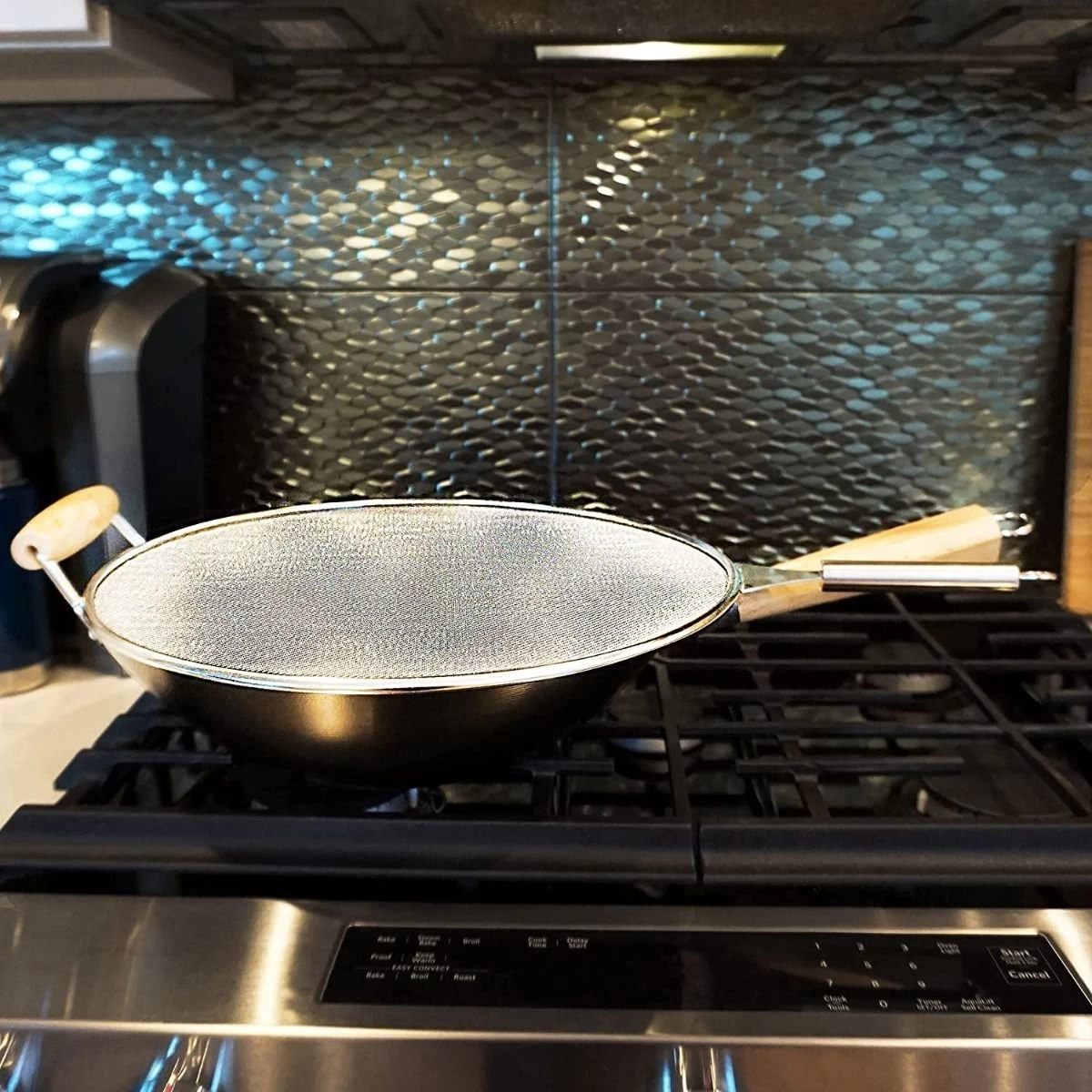 Prepare fried foods cleanly and safely using the RSVP Endurance 13″ Splatter Screen to cover your pots, pans, and woks up to 13″ in diameter. Made of durable, thick mirror-finish 18/8 double fine-mesh stainless steel that keeps its shape and construction over time, this splatter screen offers superior quality, design and performance for long-lasting use. The double fine-mesh of our splatter screen contains hot oil splatters inside the pan keeping your kitchen and cooktop free from grease while protecting you from grease burns when cooking.