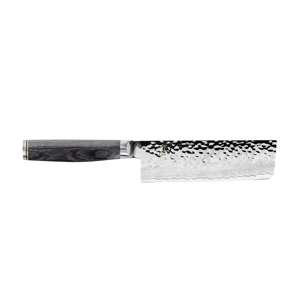 In Japanese, the word “nakiri” translates to “vegetable knife.” Perfect for slicing and dicing vegetables and meats, the Shun Premier 5.5” Nakiri Knife has a large and wide surface with a straight blade, edge, and spine, allowing you to safely and efficiently cut food. The Nakiri knife is extremely practical and a great addition to any cutlery collection.