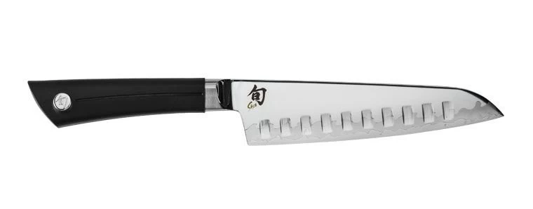 Shun’s Sora 7-inch HG Santoku has a medium weight and size, making it light, agile, and easy to maneuver while preparing your favorite fruits, vegetables, meats, and breads. The wide blade makes it comfortable to keep fingers away from the cutting board and and allows for easy transfer of foods from the countertop directly to the pan.
