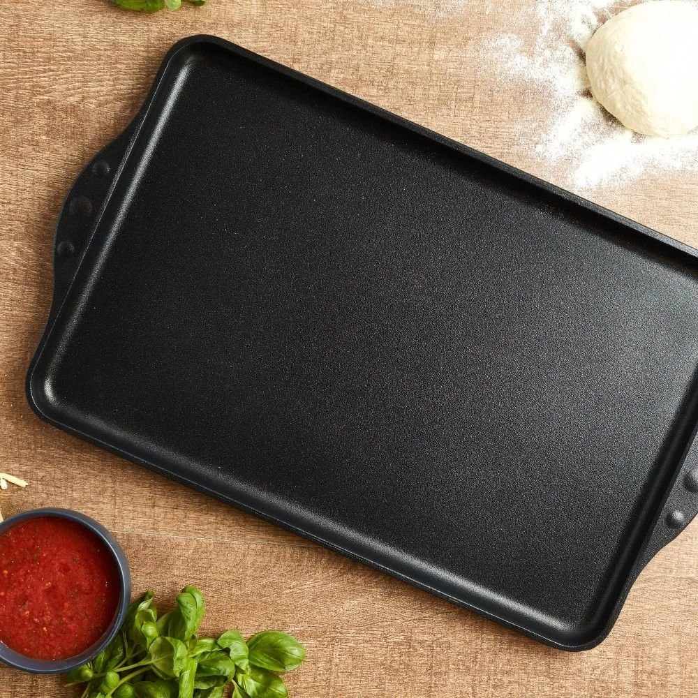 No mess, no stress! Start your day off right cooking with the XD Classic Non-Stick Double Burner Griddle by Swiss Diamond, with no mess in sight, giving you more time to enjoy your meal, not the hassle of having to scrub and soak after. Entirely cast in aluminum, the griddle exhibits high durability while resisting warping with daily use, for years of delicious meals without worry. In-between the rivet-free cooking surface and aluminum base, a corrosion-resistant layer enhances the durability already there. Throw on a bun, some sausage patties, maybe even an egg, if there’s room; now, heat from the double burner distributes evenly over the food for delicious turnouts. This griddle’s patented non-stick surface is now designed with 20% more diamonds, still releasing food with such ease, more so than before, cleaning up so effortlessly – also, there are no cords to get tangled up with either, resulting in no wasted space whatsoever on the countertop or wherever. From the stovetop or in the oven, finish up that hearty and delicious meal with the Swiss Diamond XD Classic Non-Stick Double Burner griddle … and watch the mess take care of itself by sliding off with a simple warm rinse and wipe.