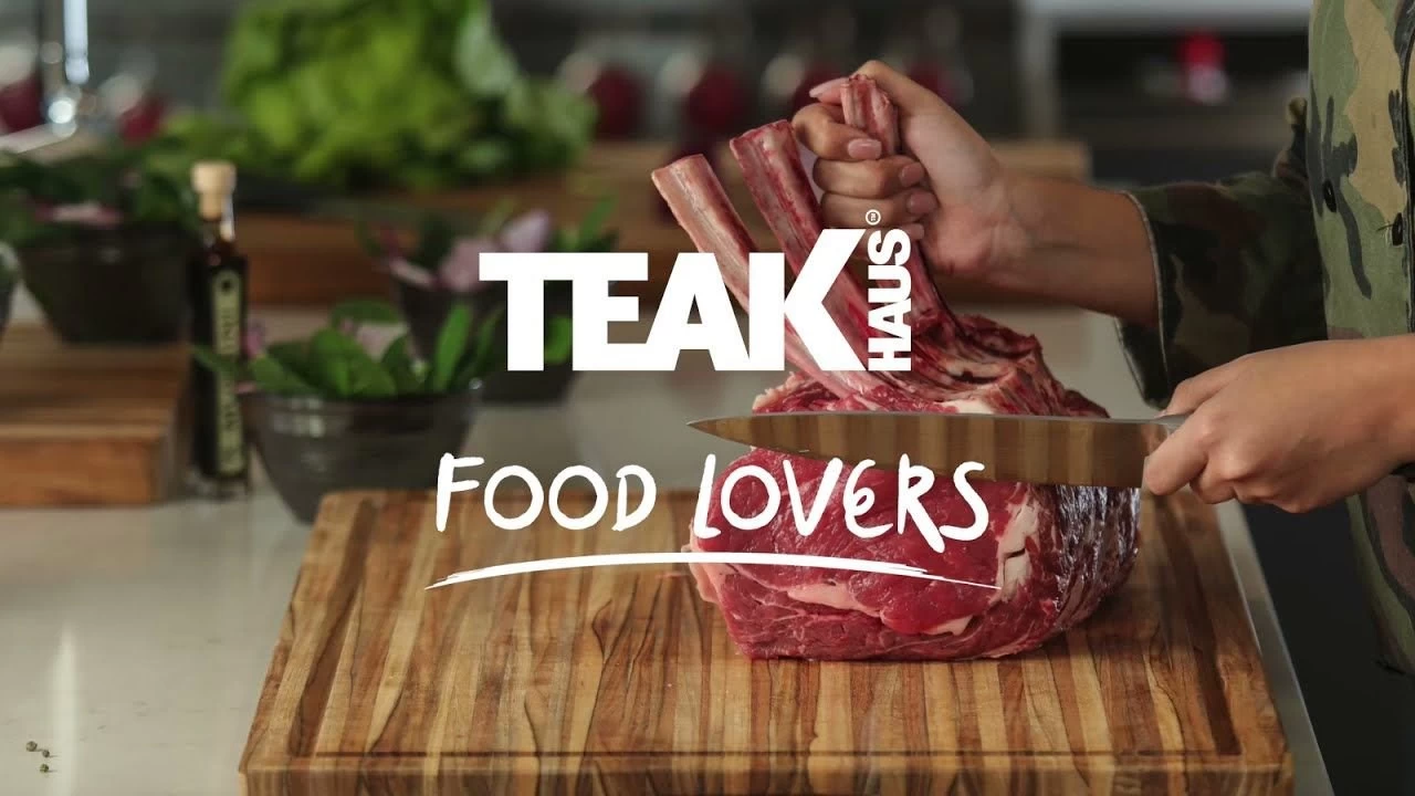 For juicy meats, the TeakHaus Edge Grain Carving Board + Juice Canal is effective in providing a larger surface area for cutting/slicing/chopping/mincing everything from chicken/poultry, beef, pork, and fish, as the juice canal will prevent excess liquids from dripping onto your countertop. When it comes to everything else like cheese, herbs, vegetables, and produce, the 14″ x 10″ TeakHaus Edge Grain Carving Board will help you not cross-contaminate foods while minimizing that precious counter space.