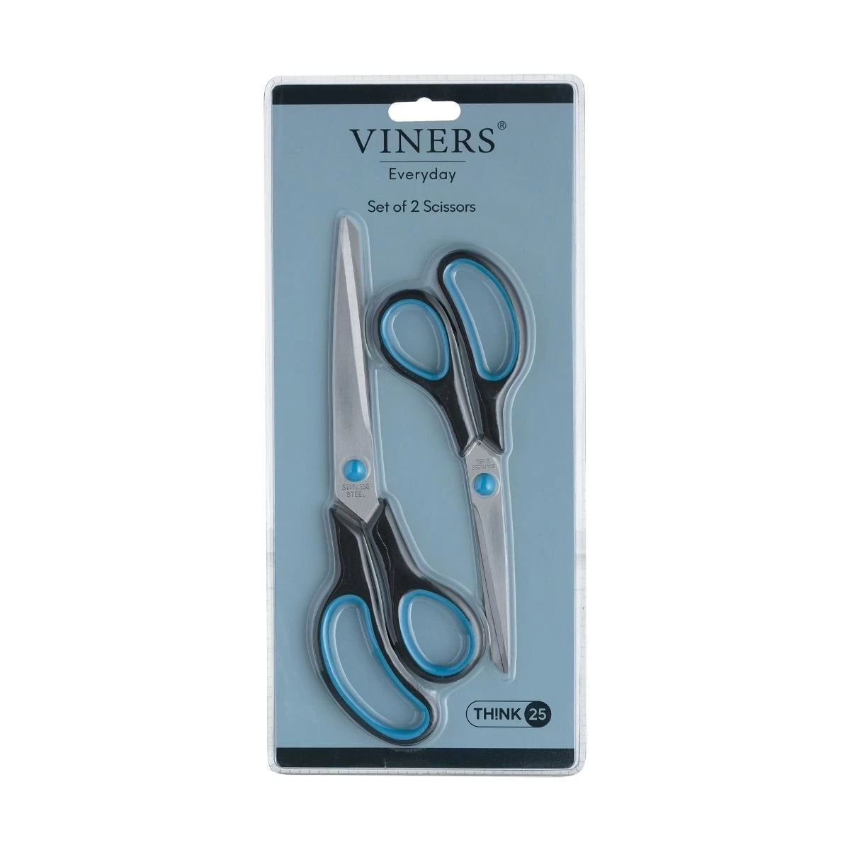 Equip yourself with an essential set of kitchen scissors with the Viners Everyday Scissors Set! This set includes an 8” pair of scissors and a 10” pair of scissors that are crafted with durable stainless steel blades and large easy-grip handles for comfort and control. This set of scissors is ideal for everyday cutting tasks and are perfect for effortlessly cutting meats, vegetables, herbs, and food packages.