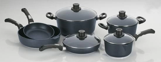 - 10-Piece cookware set from the Woll Diamond Plus Induction series