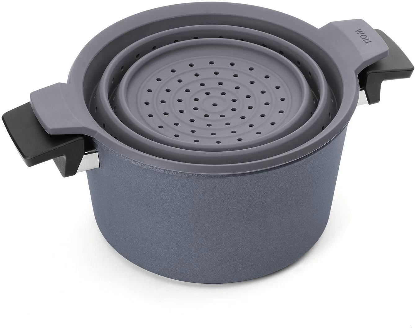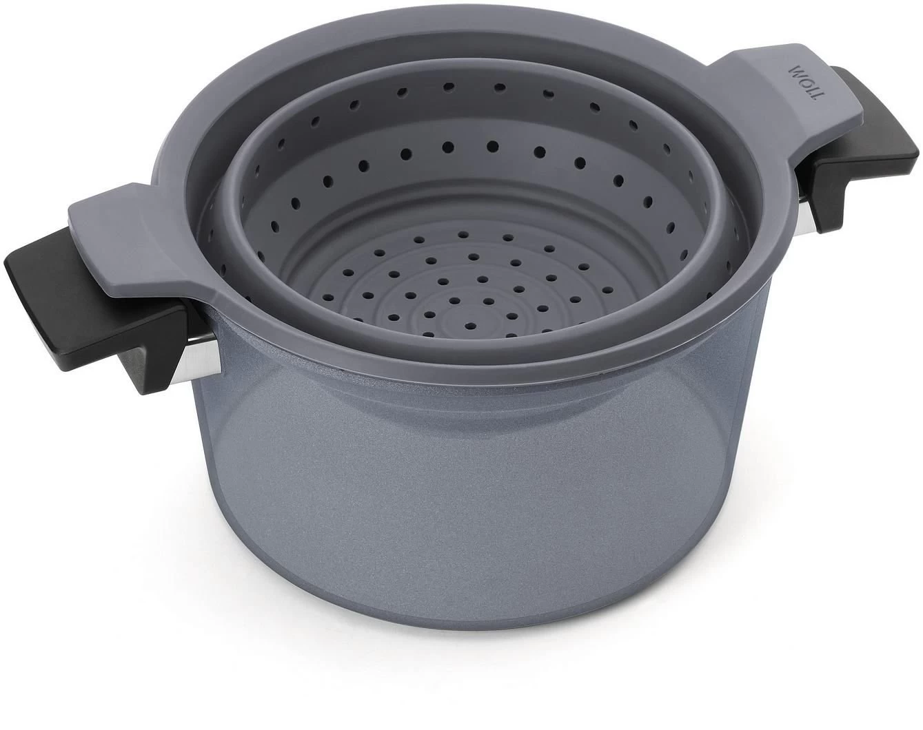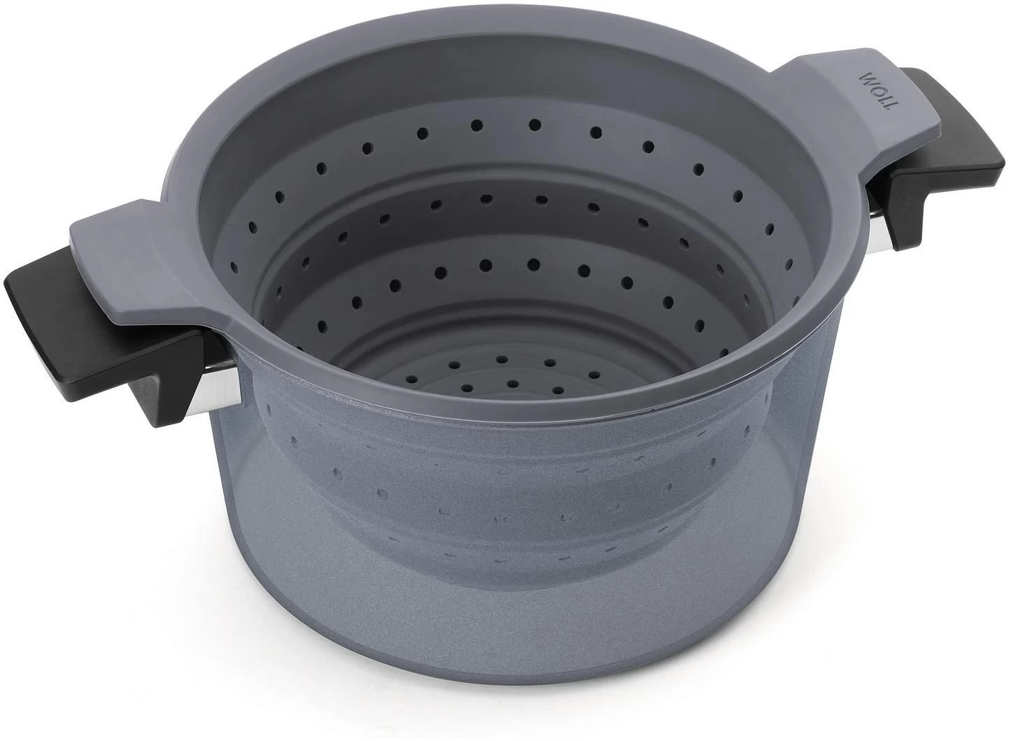The Woll multipurpose silicone insert transforms your Woll Concept Plus Stock Pot into a steamer, pasta cooker with drainer, trivet, splatterguard, and sieve all in one. The 24SI is made from durable silicone which is bacteria resistant and safe for temperatures up to 500° F. Wash in the dishwasher or by hand between uses. The Woll Silicone Insert is backed by a lifetime warranty through Woll Cookware USA.