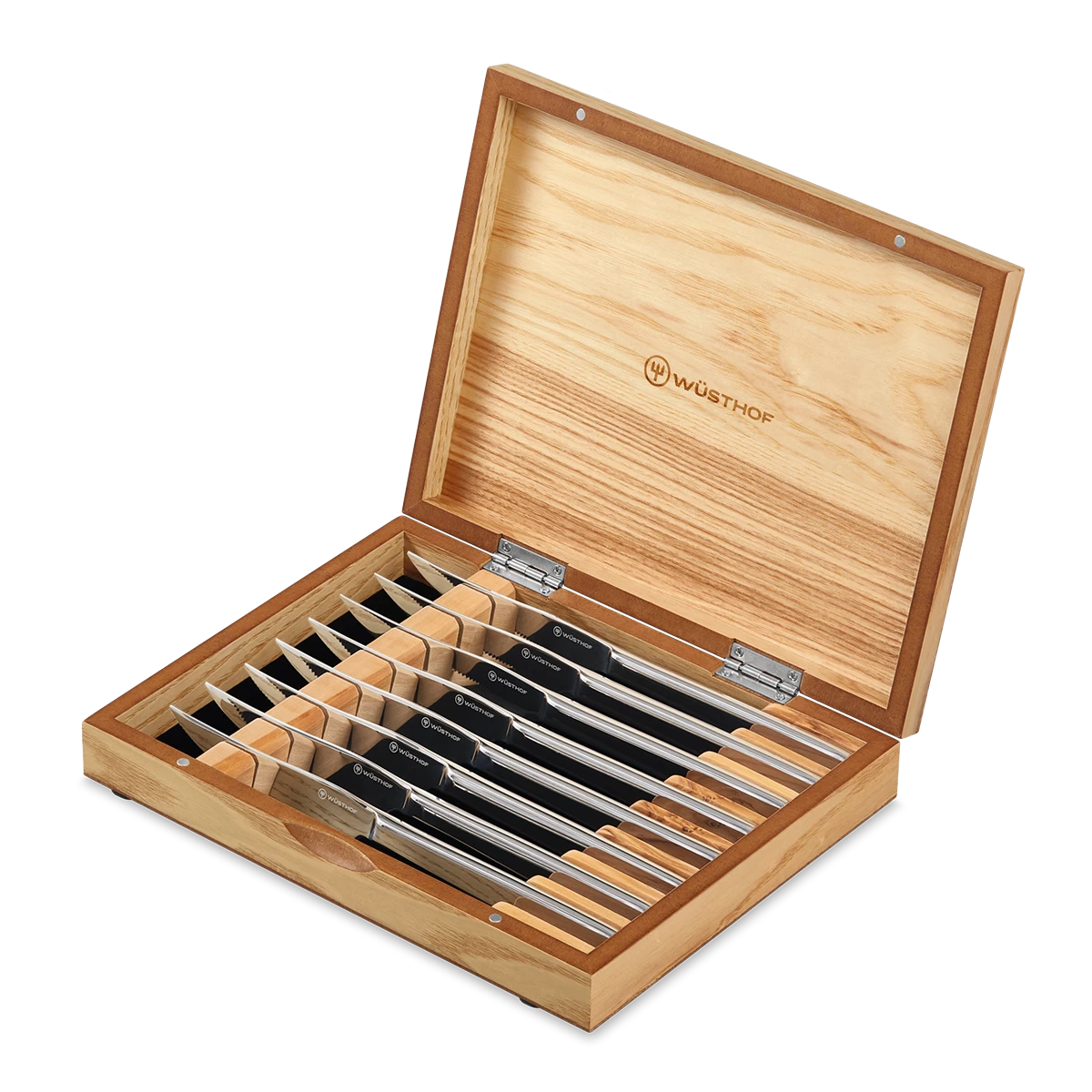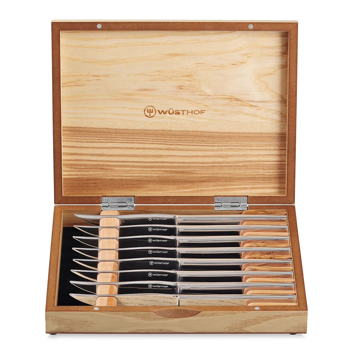 Wusthof 8-Piece Stainless Steel Steak Knife Set w/Olivewood Box Features: