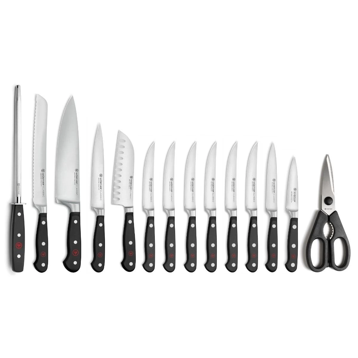 Upgrade your kitchen’s cutting power and versatility today with the Classic 15-Piece Knife Block Set from Wusthof!