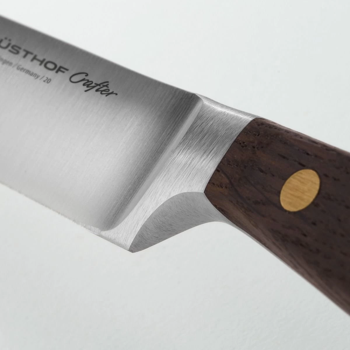 Created for unique, dynamic cooks and designed with rustic touches throughout, the Wusthof Crafter Series features robust and luxurious knives built with the high-quality craftsmanship you love about their classic knives – with some notable modern upgrades. Precision-forged from a single blank of high-carbon stainless steel, knives in the Crafter Series feature a rustic smoked oak handle that’s water-resistant and branded with their iconic Wusthof Trident. Buffed by hand for a smooth and sleek finish, each knife has a full tang and full bolster to provide ultimate balance and control for precise slicing, dicing, and cutting. With interlocking triple brass riveting that gives these knives stability and a luxuriously rustic look, the Wusthof Crafter Series Knives are the perfect cutting companion for those who like to slow down and savor their cooking experience.