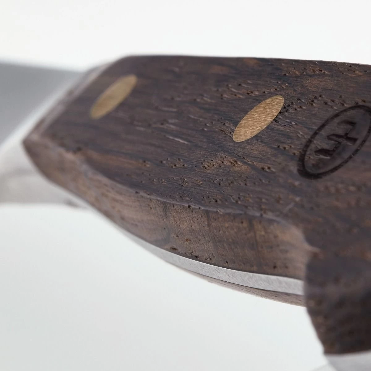 - Handle crafted from smoked oak and features a branded Wusthof logo