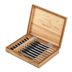 The Wusthof Gourmet Series is seen as the introductory line for home chefs just starting to build their cutlery collection. With a reasonable price point and riveted handles that are also used in the Wusthof Classic Series, these knives are a great starting point for any cutlery enthusiast. One of the biggest benefits of the Gourmet Series is that it offers a huge range of knives and knife sets. Each knife in this line is stamped as opposed to forged and while this means they won’t retain their edge as long, Wusthof makes these blades with high-quality steel as their other knives, ensuring that, with proper care, these knives can outlast their competitors. The Wusthof Gourmet Series is a great choice for anyone looking for more cutlery options and are willing to care for their knives in the long term.